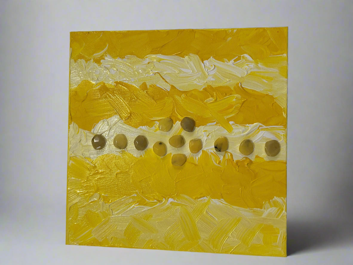 textured acrylic on canvas , embellished with jade. signed and dated.